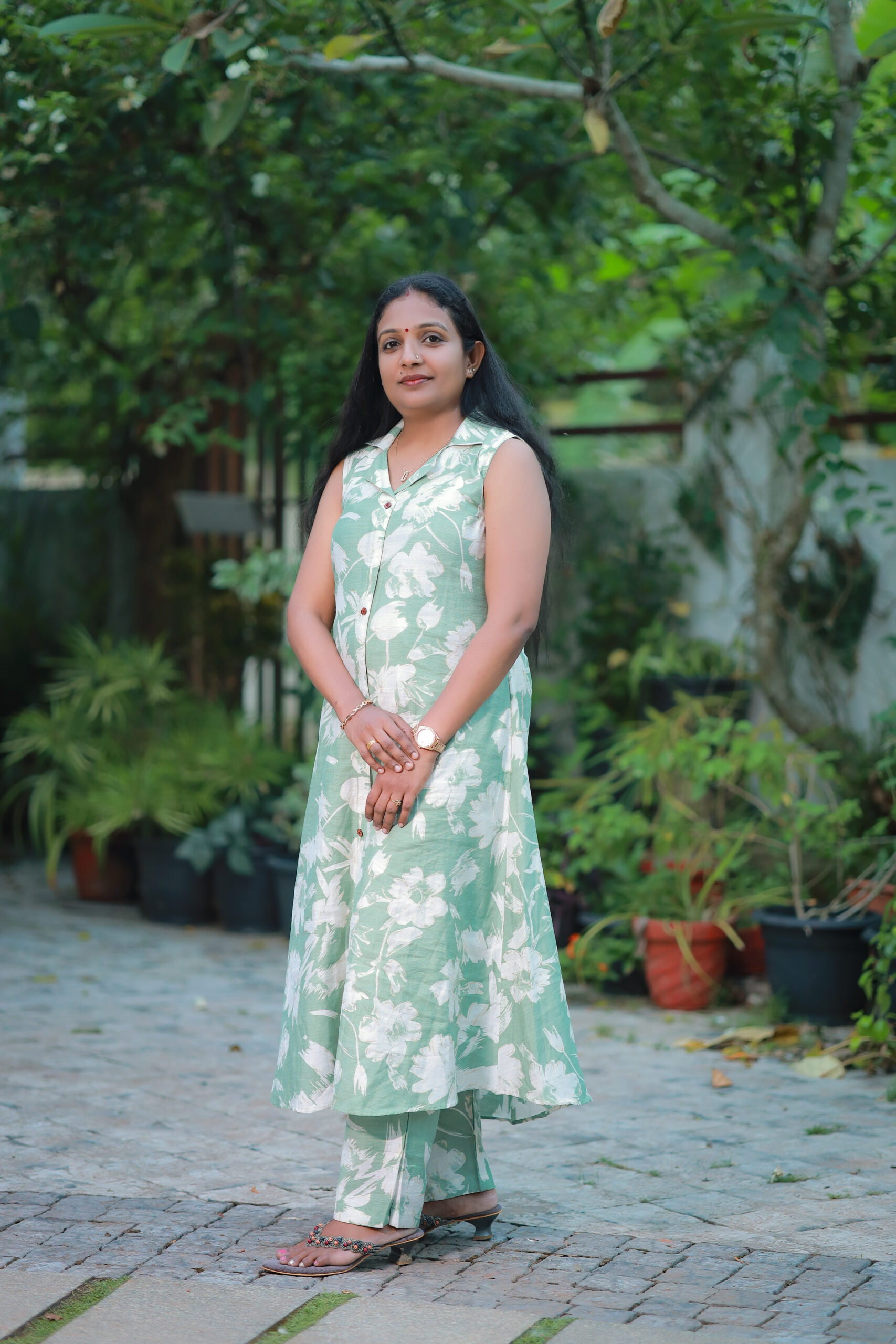 Be the first to review “Printed Sleeveless Cord Set with Collar”